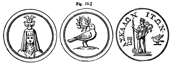 If the reader looks, in Layard, at the triune emblem of the supreme Assyrian divinity, he will see this very idea visibly embodied. There the wings and tail of the dove have two bands associated with them instead of feet (LAYARD'S Nineveh and its Remains).