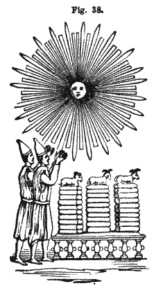 Now, this Son, who was symbolised as "Corn," was the SUN-divinity incarnate, according to the sacred oracle of the great goddess of Egypt: "No mortal hath lifted my veil. The fruit which I have brought forth is the SUN" (BUNSEN'S Egypt). What more natural then, if this incarnate divinity is symbolised as the "bread of God," than that he should be represented as a "round wafer," to identify him with the Sun? Is this a mere fancy? Let the reader peruse the following extract from Hurd, in which he describes the embellishments of the Romish altar, on which the sacrament or consecrated wafer is deposited, and then he will be able to judge: "A plate of silver, in the form of a SUN, is fixed opposite to the SACRAMENT on the altar; which, with the light of the tapers, makes a most brilliant appearance." What has that "brilliant" "Sun" to do there, on the altar, over against the "sacrament," or round wafer? In Egypt, the disk of the Sun was represented in the temples, and the sovereign and his wife and children were represented as adoring it. Near the small town of Babin, in Upper Egypt, there still exists in a grotto, a representation of a sacrifice to the sun, where two priests are seen worshipping the sun's image. In the great temple of Babylon, the golden image of the Sun was exhibited for the worship of the Babylonians. In the temple of Cuzco, in Peru, the disk of the sun was fixed up in flaming gold upon the wall, that all who entered might bow down before it. The Paeonians of Thrace were sun-worshippers; and in their worship they adored an image of the sun in the form of a disk at the top of a long pole. In the worship of Baal, as practised by the idolatrous Israelites in the days of their apostacy, the worship of the sun's image was equally observed; and it is striking to find that the image of the sun, which apostate Israel worshipped, was erected above the altar. When the good king Josiah set about the work of reformation, we read that his servants in carrying out the work, proceeded thus (2 Chron 34:4): "And they brake down the altars of Baalim in his presence, and the images (margin, SUN-IMAGES) that were on high above them, he cut down." Benjamin of Tudela, the great Jewish traveller, gives a striking account of sun-worship even in comparatively modern times, as subsisting among the Cushites of the East, from which we find that the image of the sun was, even in his day, worshipped on the altar. "There is a temple," says he, "of the posterity of Chus, addicted to the contemplation of the stars. They worship the sun as a god, and the whole country, for half-a-mile round their town, is filled with great altars dedicated to him. By the dawn of morn they get up and run out of town, to wait the rising sun, to whom, on every altar, there is a consecrated image, not in the likeness of a man, but of the solar orb, framed by magic art. These orbs, as soon as the sun rises, take fire, and resound with a great noise, while everybody there, men and women, hold censers in their hands, and all burn incense to the sun." From all this, it is manifest that the image of the sun above, or on the altar, was one of the recognised symbols of those who worshipped Baal or the sun. And here, in a so-called Christian Church, a brilliant plate of silver, "in the form of a SUN," is so placed on the altar, that every one who adores at that altar must bow down in lowly reverence before that image of the "Sun." Whence, I ask, could that have come, but from the ancient sun-worship, or the worship of Baal? And when the wafer is so placed that the silver "SUN" is fronting the "round" wafer, whose "roundness" is so important an element in the Romish Mystery, what can be the meaning of it, but just to show to those who have eyes to see, that the "Wafer" itself is only another symbol of Baal, or the Sun. If the sun-divinity was worshipped in Egypt as "the Seed," or in Babylon as the "Corn," precisely so is the wafer adored in Rome. "Bread-corn of the elect, have mercy upon us," is one of the appointed prayers of the Roman Litany, addressed to the wafer, in the celebration of the mass. And one at least of the imperative requirements as to the way in which that wafer is to be partaken of, is the very same as was enforced in the old worship of the Babylonian divinity. Those who partake of it are required to partake absolutely fasting. This is very stringently laid down. Bishop Hay, laying down the law on the subject, says that it is indispensable, "that we be fasting from midnight, so as to have taken nothing into our stomach from twelve o'clock at night before we receive, neither food, nor drink, nor medicine." Considering that our Lord Jesus Christ instituted the Holy Communion immediately after His disciples had partaken of the paschal feast, such a strict requirement of fasting might seem very unaccountable. But look at this provision in regard to the "unbloody sacrifice" of the mass in the light of the Eleusinian Mysteries, and it is accounted for at once; for there the first question put to those who sought initiation was, "Are you fasting?" (POTTER, Eleusiania) and unless that question was answered in the affirmative, no initiation could take place. There is no question that fasting is in certain circumstances a Christian duty; but while neither the letter nor the spirit of the Divine institution requires any such stringent regulation as the above, the regulations in regard to the Babylonian Mysteries make it evident whence this requirement has really come.