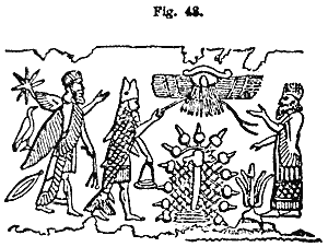 * Nineveh and Babylon. Layard seems to think the instrument referred to, which is borne by the king, "attired as high priest in his sacrificial robes," a sickle; but any one who attentively examines it will see that it is a crosier, adorned with studs, as is commonly the case even now with the Roman crosiers, only, that instead of being held erect, it is held downwards.