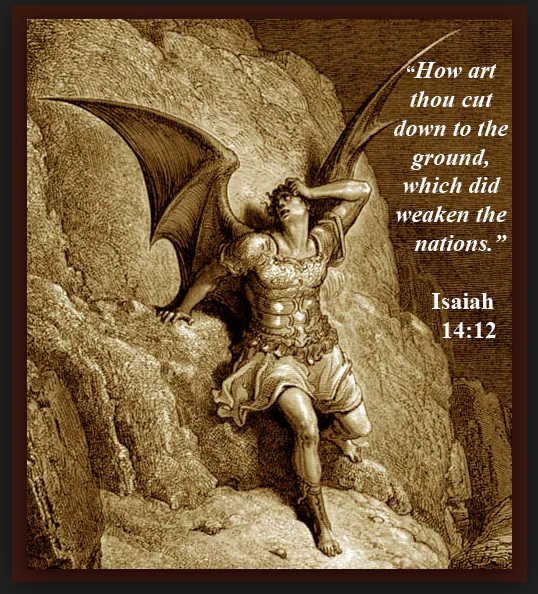 In Isaiah 14:12 the King James Holy Bible (and MANY others, as we shall soon see) reads: "How art thou fallen from heaven, O LUCIFER, son of the morning! how art thou cut down to the ground, which didst weaken the nations! For thou hast said in thine heart, I will ascend into heaven, I will exalt my throne above the stars of God: I will sit also upon the mount of the congregation, in the sides of the north: I will ascend above the heights of the clouds; I will be like the most High. Yet thou shalt be brought down to hell, to the sides of the pit."