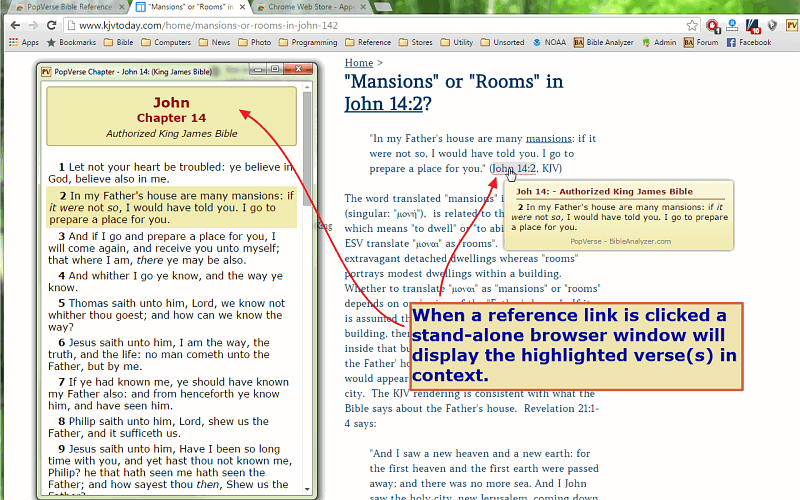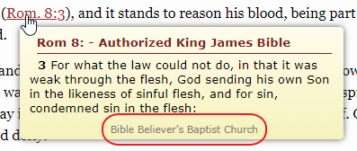 As many of you certainly have found, there are a handful of organizations who have developed a tagging tool webmasters can link to in their pages that will convert the Bible references into links which will take you to the organization's web page and display the Bible text. Most now also show the text in a popup when the cursor is over the reference. This is a helpful feature, but there are still some shortcomings,
